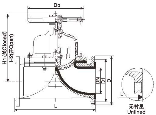G41J手動襯膠隔膜閥結(jié)構(gòu)尺寸