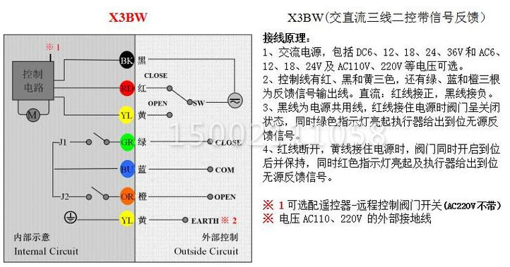 X3BW電動(dòng)銅球閥控制方式接線原理圖如下: