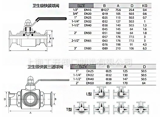 | 衛(wèi)生級不銹鋼快裝球閥、衛(wèi)生級快裝直通球閥、衛(wèi)生級快裝三通球閥(L/T) | |||