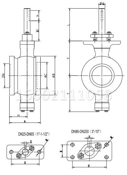| DN | A | H | B | C | T | Y | L | Φd | h1 | h | S | K | M | Z |