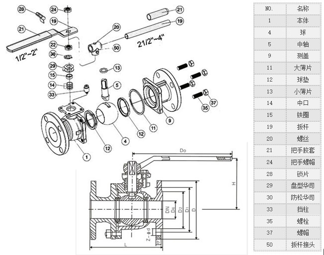 Q41F手動(dòng)法蘭式鑄鋼球閥結(jié)構(gòu)圖及連接尺寸