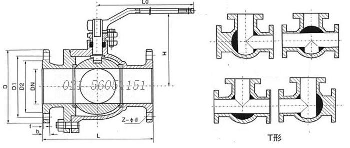 Q45F/Q45H三通T型球閥主要能使三條正交的管道相互聯(lián)通和切斷第三條通道,起分流、合流作用。