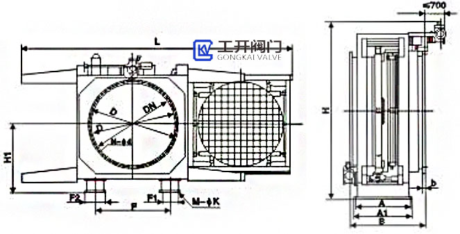 KF941X-2.5C電動(dòng)敞開式插板閥|敞開式盲板閥外形尺寸和結(jié)構(gòu)圖
