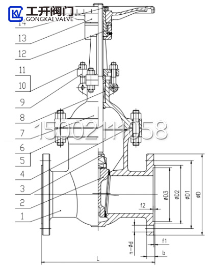 閥門(mén)上設(shè)有“開(kāi)”“關(guān)”指示機(jī)構(gòu),順時(shí)針?lè)较蛐D(zhuǎn),閘板下降,指針指向“關(guān)”位置,閥門(mén)關(guān)閉。逆時(shí)針?lè)较蛐D(zhuǎn),閘板上升,指針指向“開(kāi)”位置,閥門(mén)開(kāi)啟。