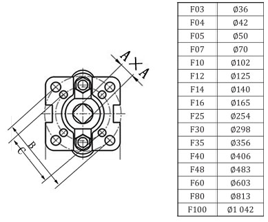 ISO5211高平臺閥尺寸-F05/F07代表法蘭盤連接尺寸