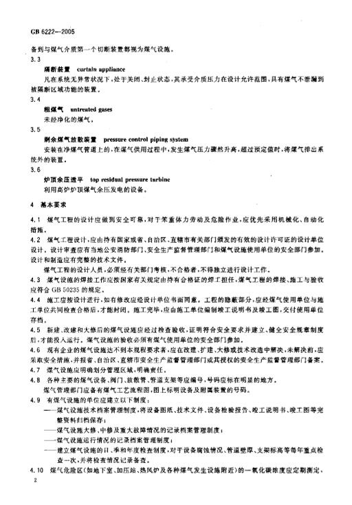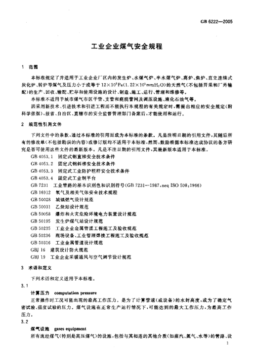 GB6222-2005《工業(yè)企業(yè)煤氣安全規(guī)程》