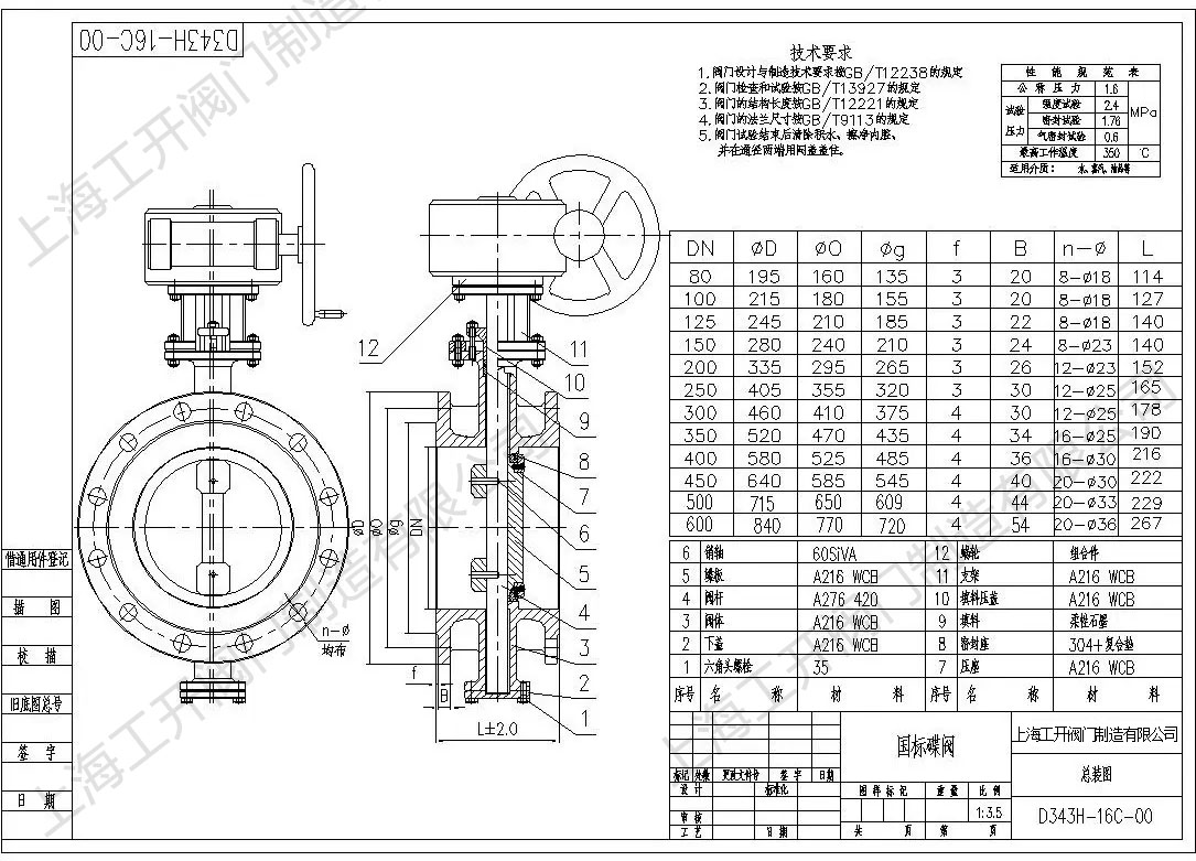 D343H-16C圖紙-硬密封蝶閥圖紙