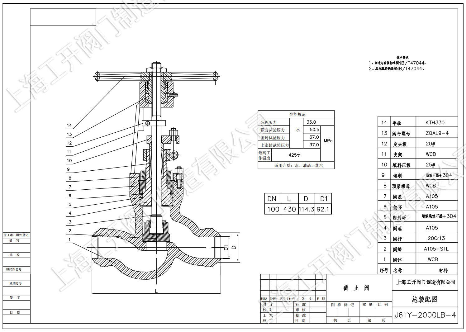 J61Y-2500LB電站高壓截止閥圖紙