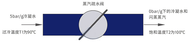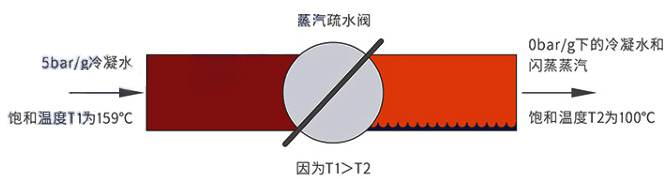 5barg壓力冷凝水飽和溫度為159°℃,具有的能量是671KJ/Kg,通過蒸汽疏水閥后壓力為0bar/g,根據(jù)熱力學(xué)第一定律,低壓側(cè)的冷凝水含有的能量與高壓側(cè)的能量必然相同,遵守能量守恒定律。