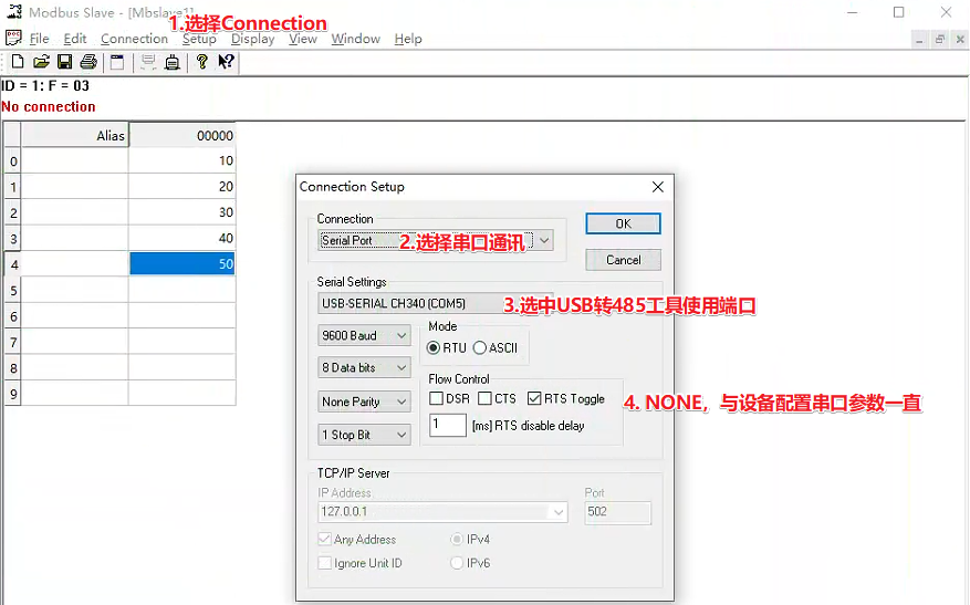 Modbus slave模擬子設(shè)備接入DTU設(shè)備--硬件接線以及仿真軟件配置